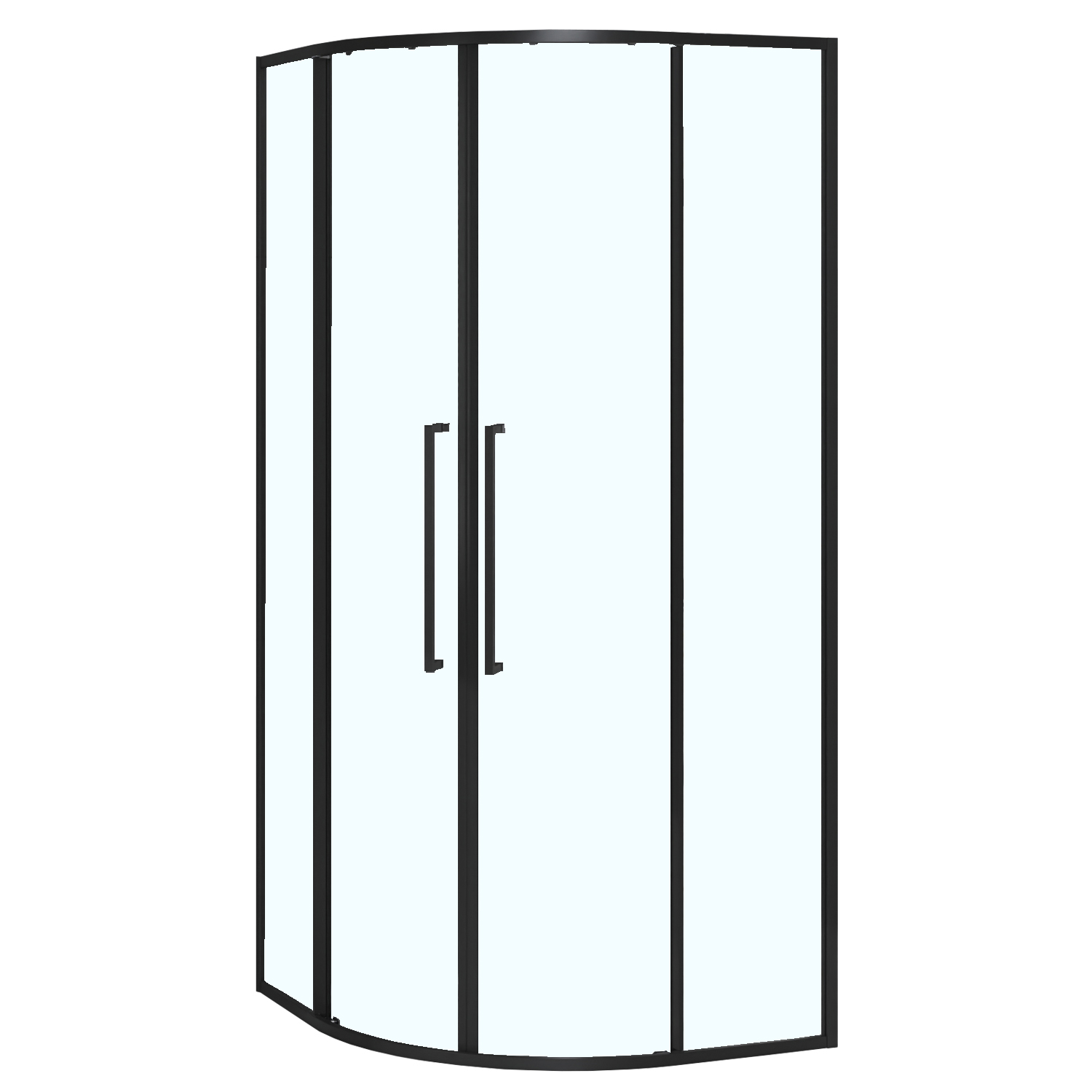 - Радиусный Душевой Уголок 1/4 круга ВХОД С УГЛА, с двумя раздвижными дверьми, на двойных роликах с нержавеющими подшипниками.