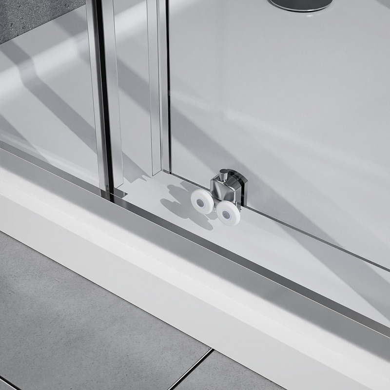 - Квадратный душевой уголок, с двумя раздвижными дверьми, на усиленных двойных роликах с нержавеющими подшипниками.