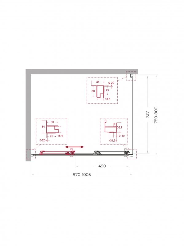 Характеристики Душевое ограждение BelBagno (UNO-195-AHF-31-100/80-C-NERO)