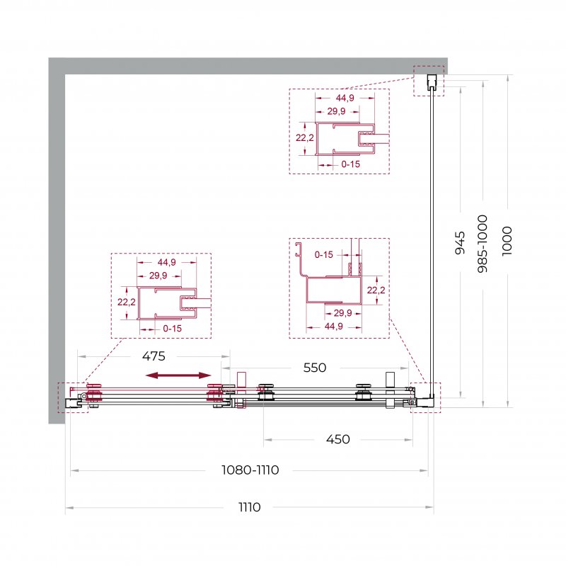 Характеристики Душевое ограждение BelBagno (MARINO-2-AH-1-110/100-C-GM)