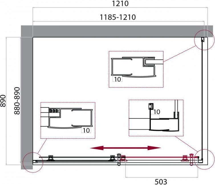 - Регулировка ширины: предусмотрена за счет боковых профилей