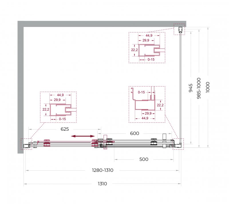 Описание Душевое ограждение BelBagno MARINO-2-AH-1-130/100-C-GM