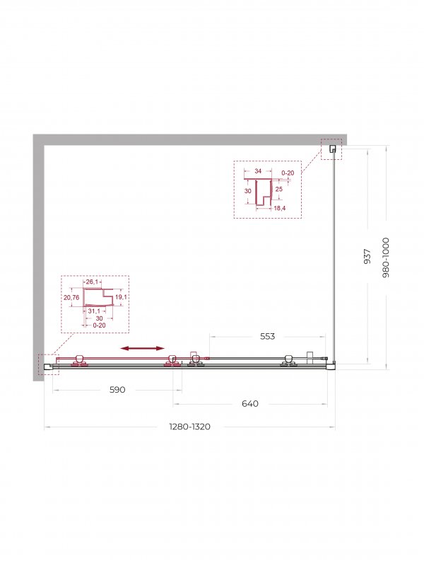 Описание Душевое ограждение BelBagno UNO-195-AH-1-130/100-C-Cr