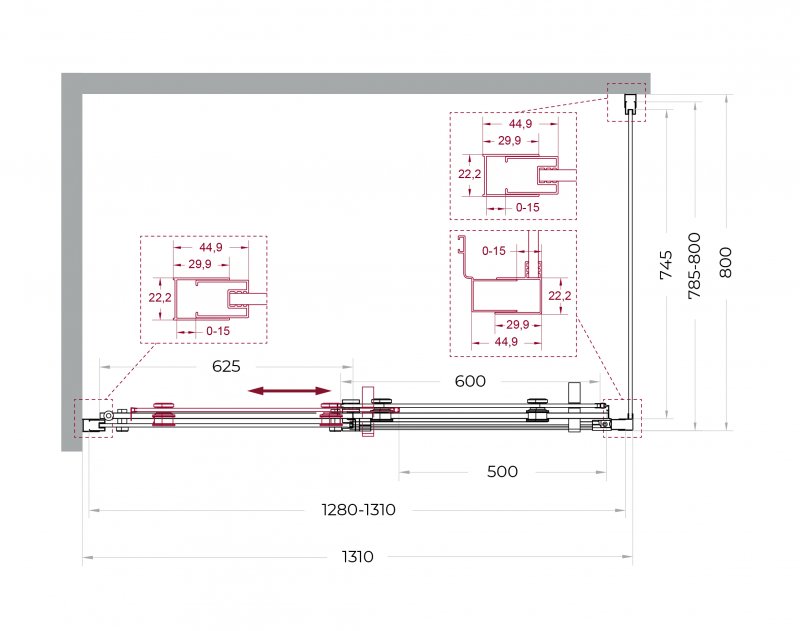 Характеристики Душевое ограждение BelBagno (MARINO-2-AH-1-130/80-C-GM)