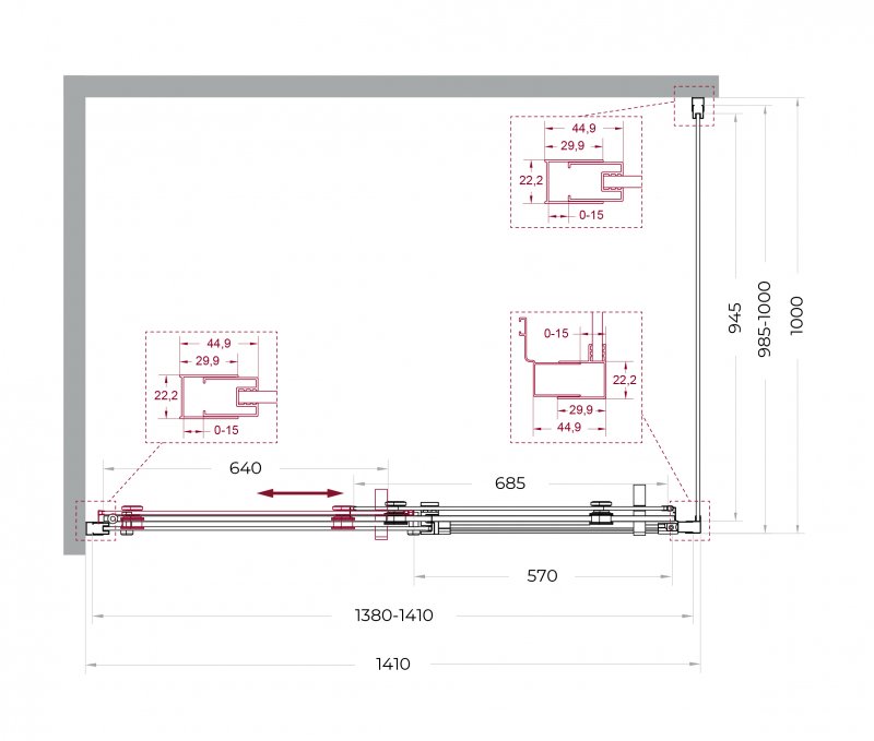 Характеристики Душевое ограждение BelBagno (MARINO-2-AH-1-140/100-C-Cr)