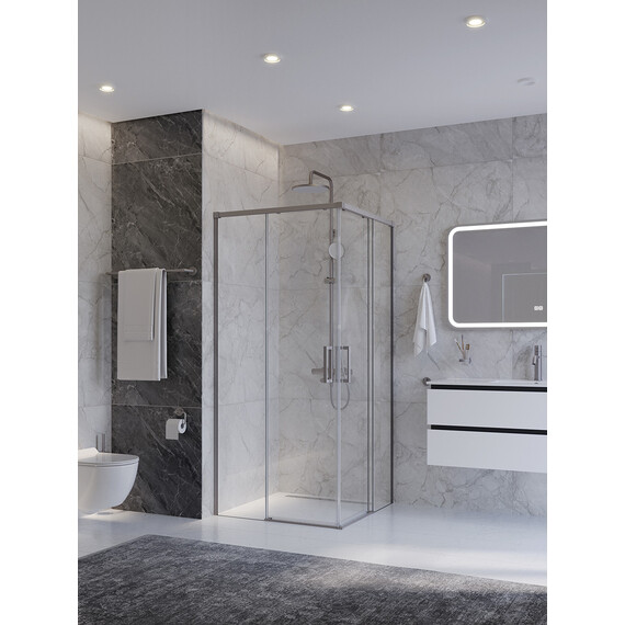Душевое ограждение Cezares PLANE-A-2-100-C-IN, размер 1000x1000x1950 мм, профиль сатин, стекло прозрачное, ширина входа 563 мм. Габариты регулировки(890x900)x(890x900)x1950 мм. Поддон приобретается отдельно.