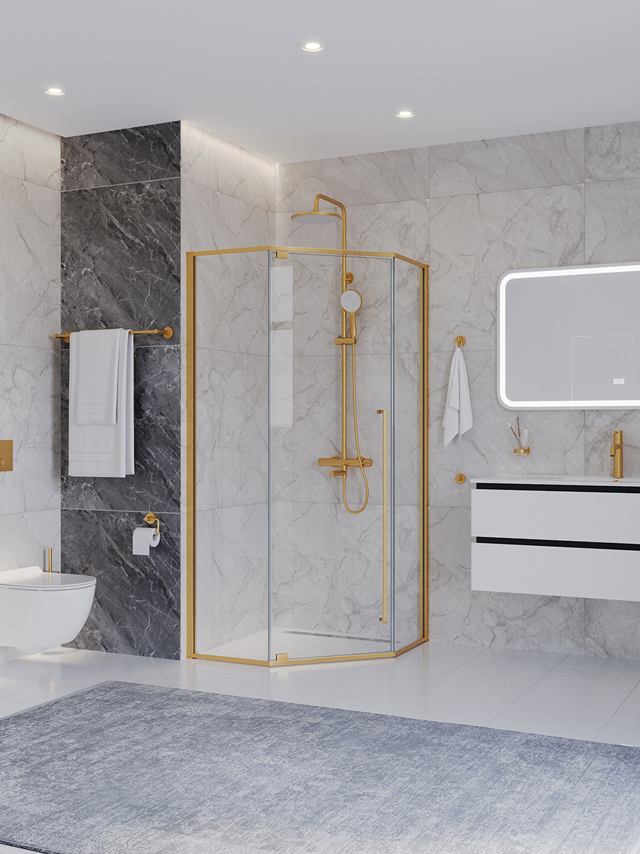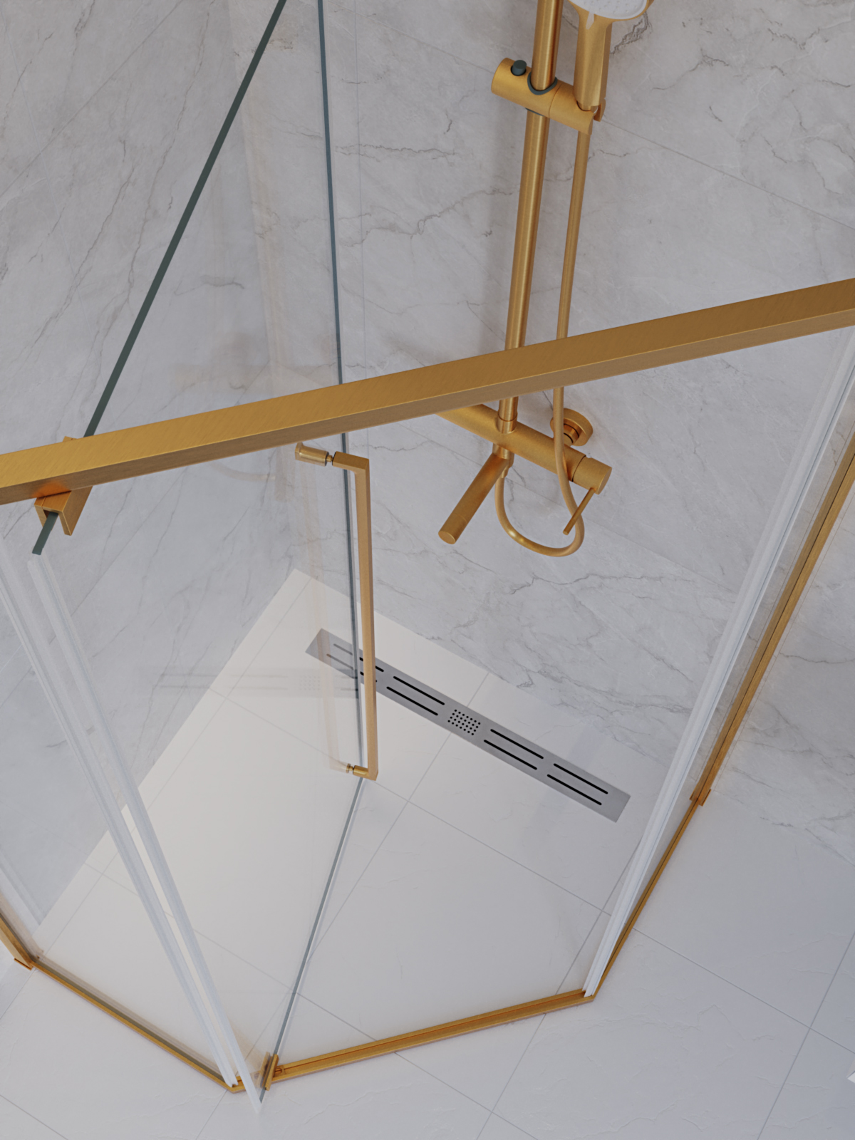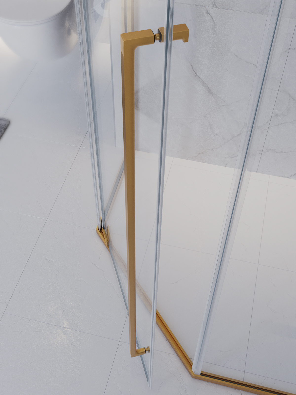 Душевое ограждение Cezares 100x100 см PLANE-P-1-100-C-BORO (стекло 8 мм) брашированное золото/прозрачное