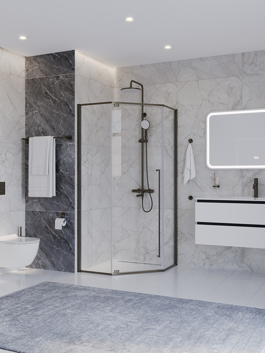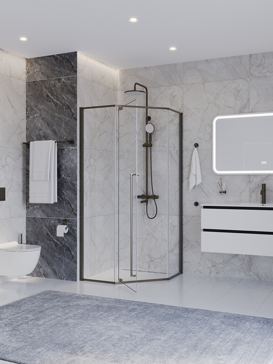 Душевое ограждение Cezares 100x100 см PLANE-P-1-100-C-GM (стекло 8 мм) оружейная сталь/прозрачное