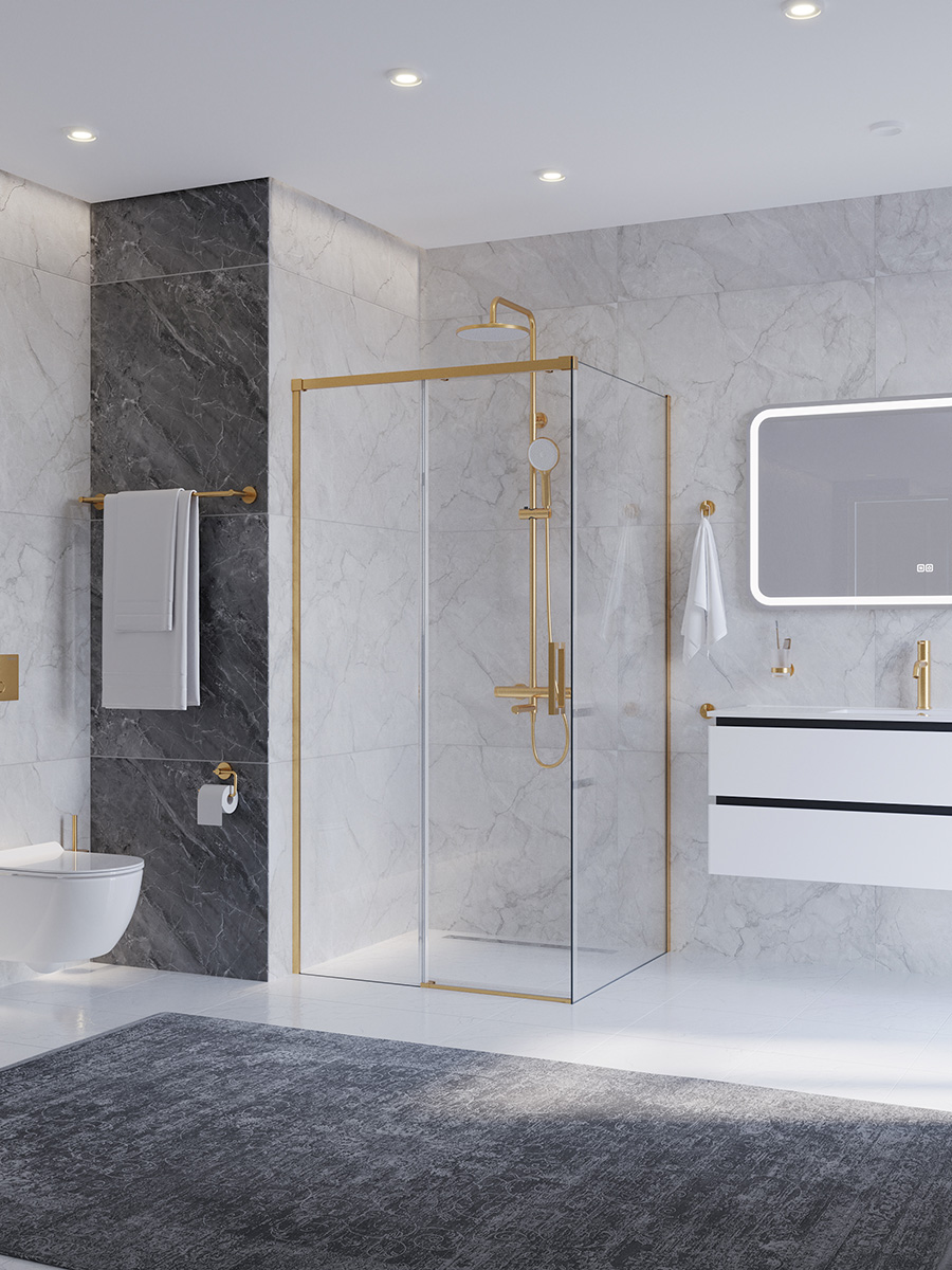 Душевое ограждение Cezares 100x80 см PLANE-AH-1-100/80-C-BORO, брашированное золото/прозрачное