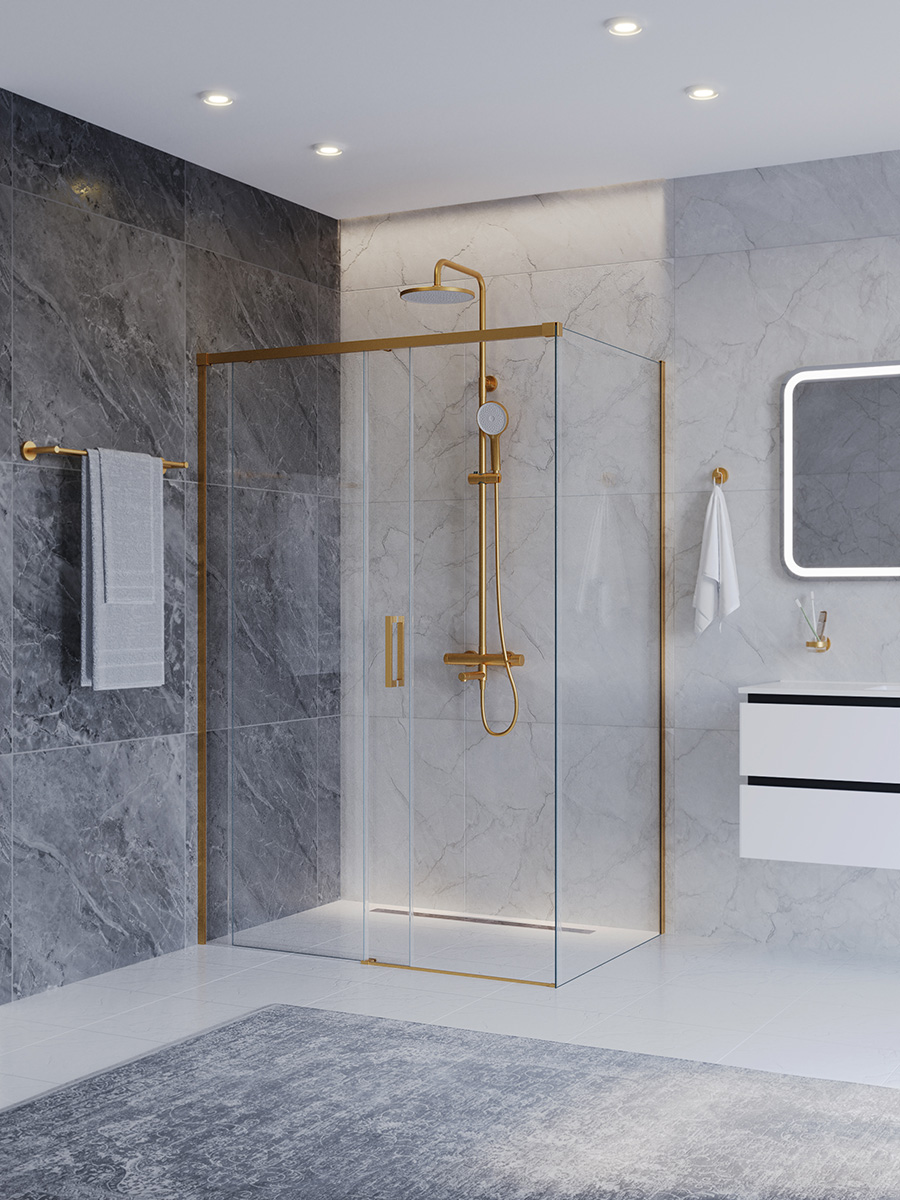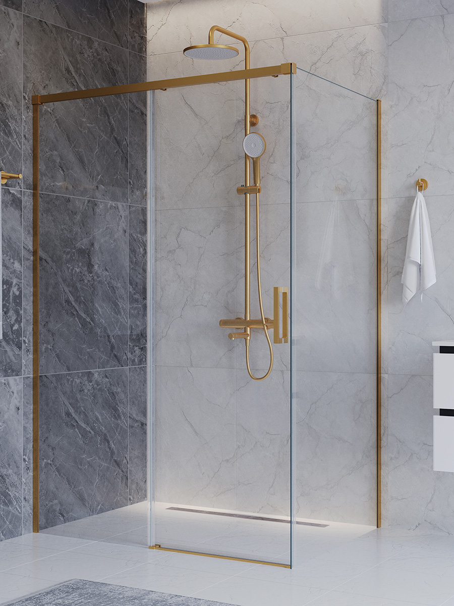 Душевое ограждение Cezares 130x80 см PLANE-AH-1-130/80-C-BORO, брашированное золото/прозрачное