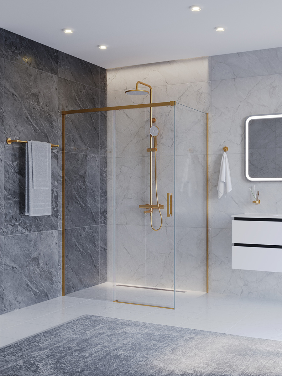 Душевое ограждение Cezares 130x90 см PLANE-AH-1-130/90-C-BORO, брашированное золото/прозрачное