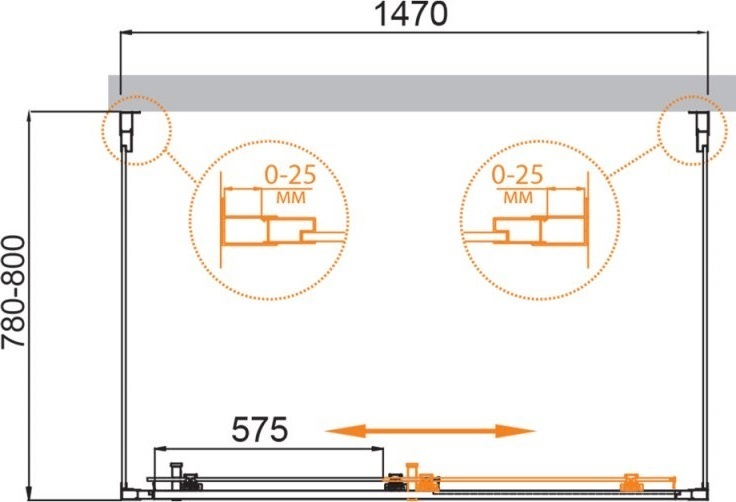 - Регулировка ширины предусмотрена за счет боковых профилей