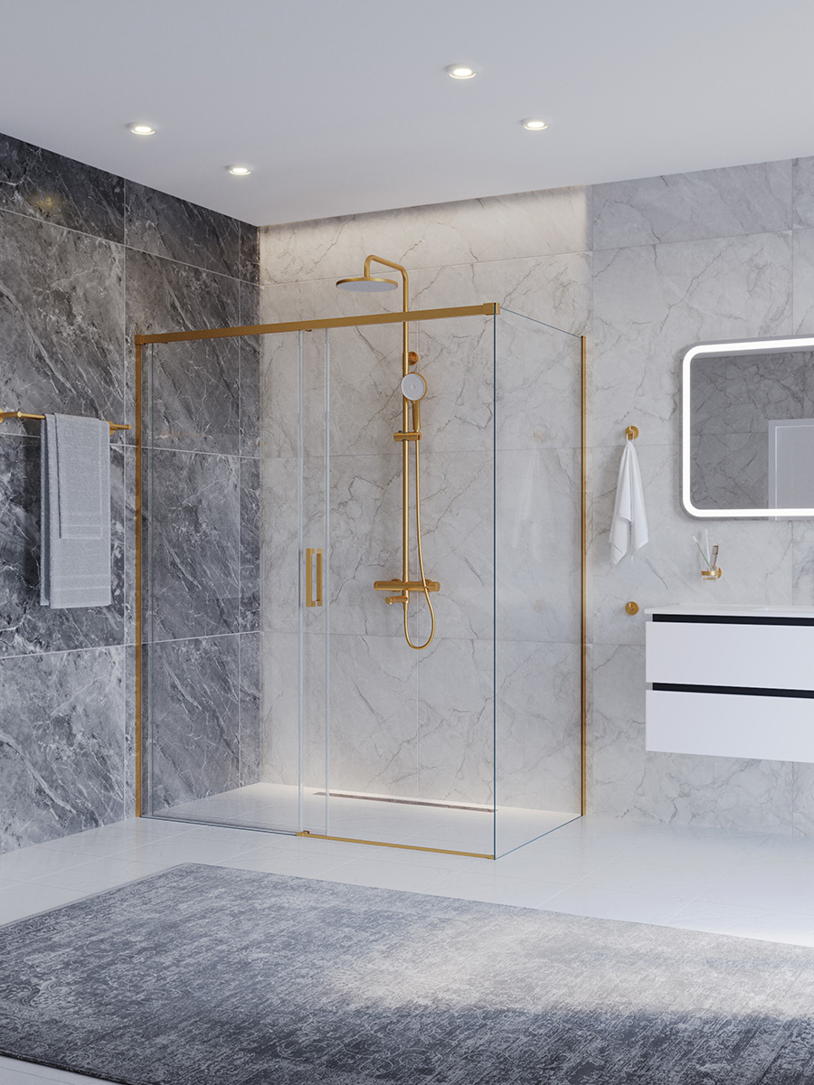 Душевое ограждение Cezares 150x80 см PLANE-AH-1-150/80-C-BORO, брашированное золото/прозрачное