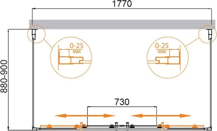 - Регулировка ширины предусмотрена за счет боковых профилей
