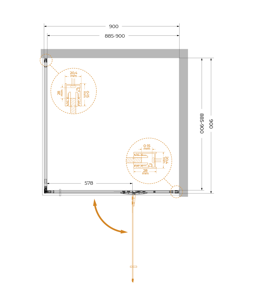 Характеристики Душевое ограждение Cezares (LINER-A-1-90-C-GM-R)