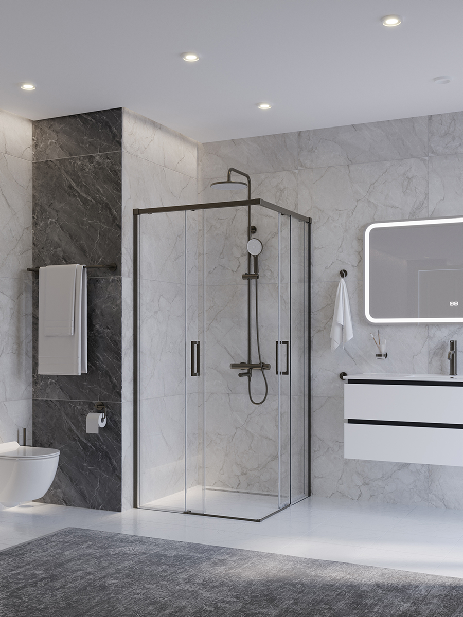 Душевое ограждение Cezares 90x90 см PLANE-A-2-90-C-GM, оружейная сталь/прозрачное