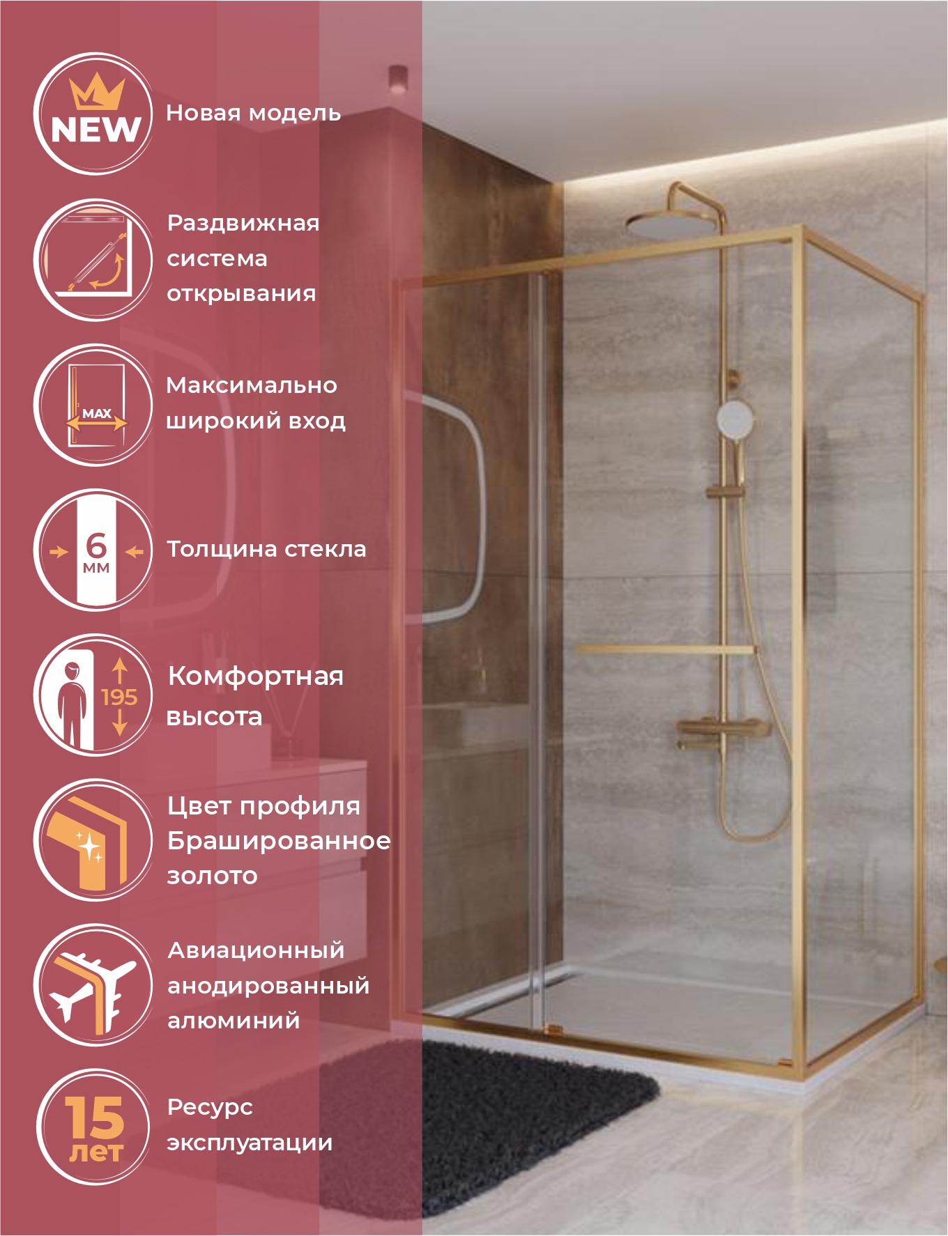 Душевое ограждение Cezares Lux 120x90 см LUX-AH-FS-11-120/90-C-BORO, брашированное золото/прозрачное