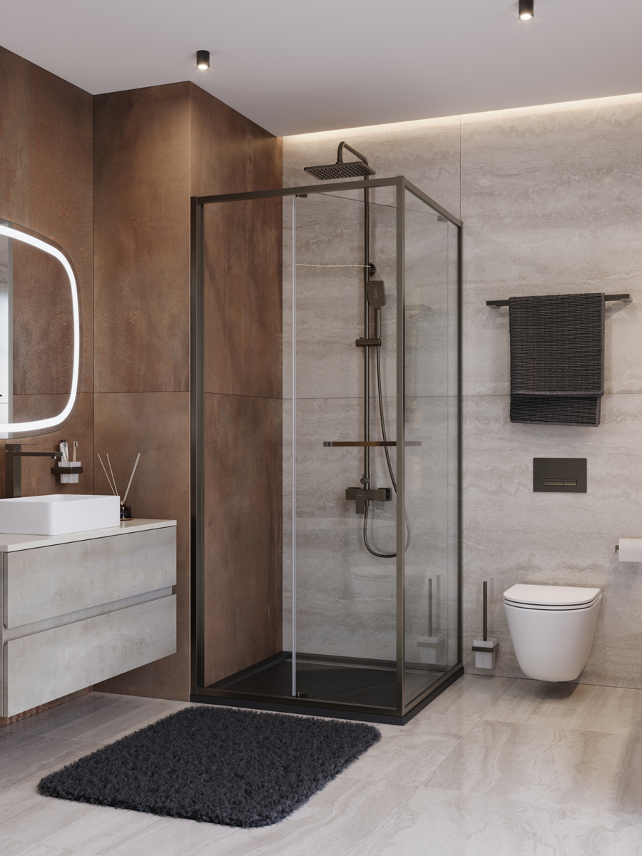 Душевое ограждение Cezares Lux 90x90 см LUX-A-FS-1-90-C-GM, оружейная сталь/прозрачное