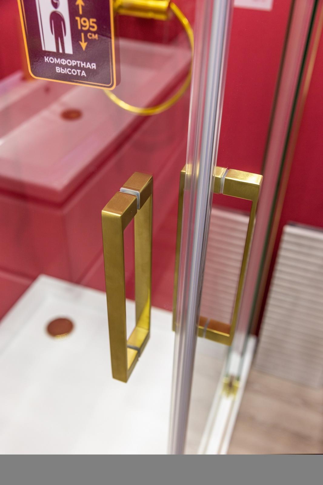 Душевое ограждение Cezares SLIDER-AH-2-70/80-90/100-C-BORO (700-800)x(900-1000)x1950 мм, цвет стекла - прозрачное, 8 мм, цвет профиля - брашированное золото. Поддон приобретается отдельно.