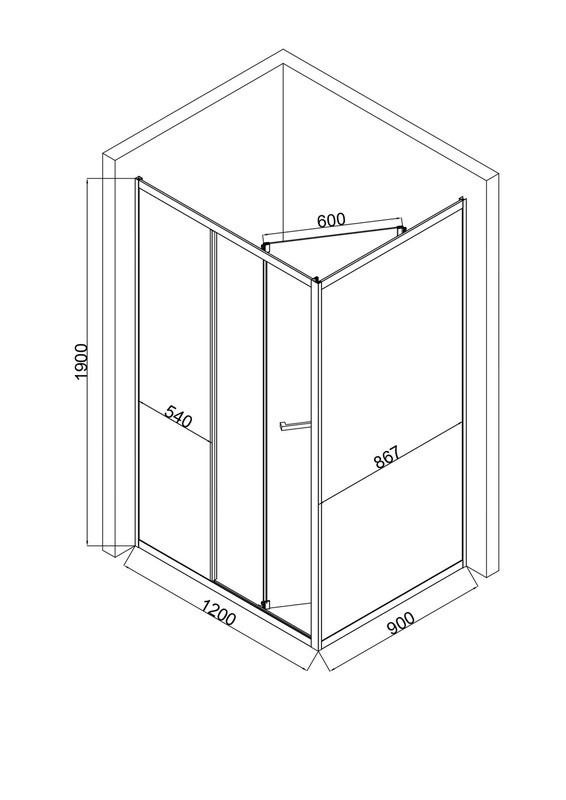 Душевое ограждение EvaGold EG220081 1200х900х1900 мм, стекло - прозрачное, 6 мм, профиль - хром. Поддон приобретается отдельно.
