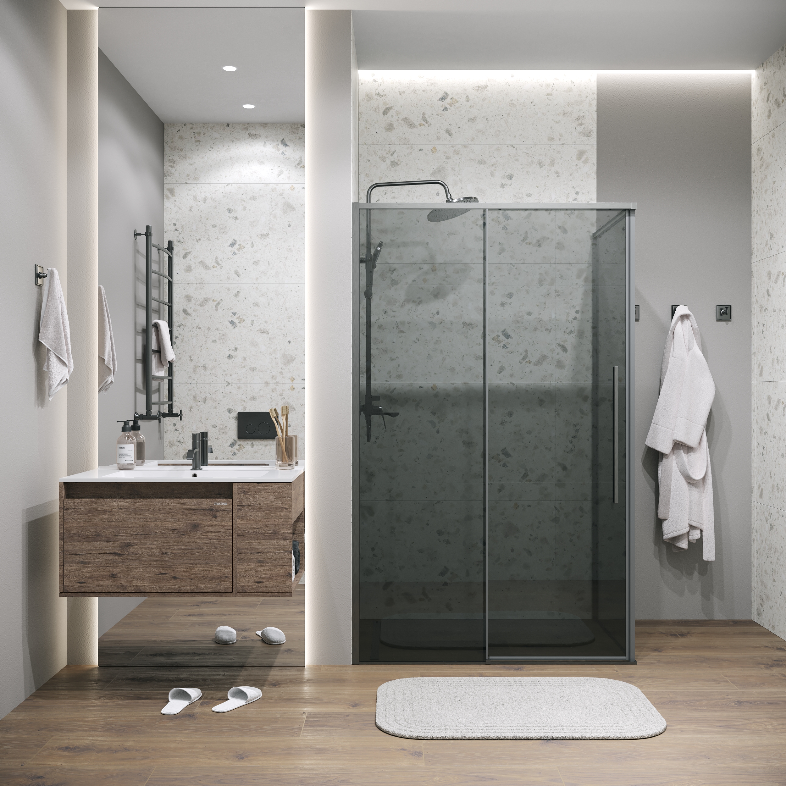 Душевое ограждение Grossman Galaxy 100х100 см 120.K33.01.1010.42.10, оружейная сталь/тонированное