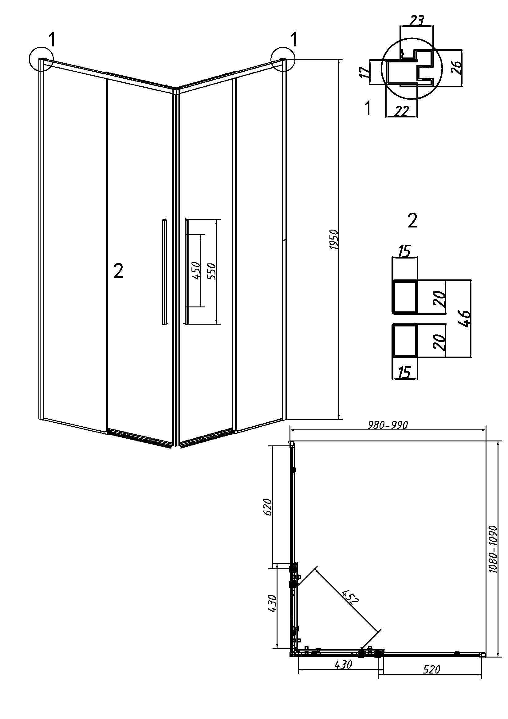 Описание Душевое ограждение Grossman 300.K33.01.1110.21.00
