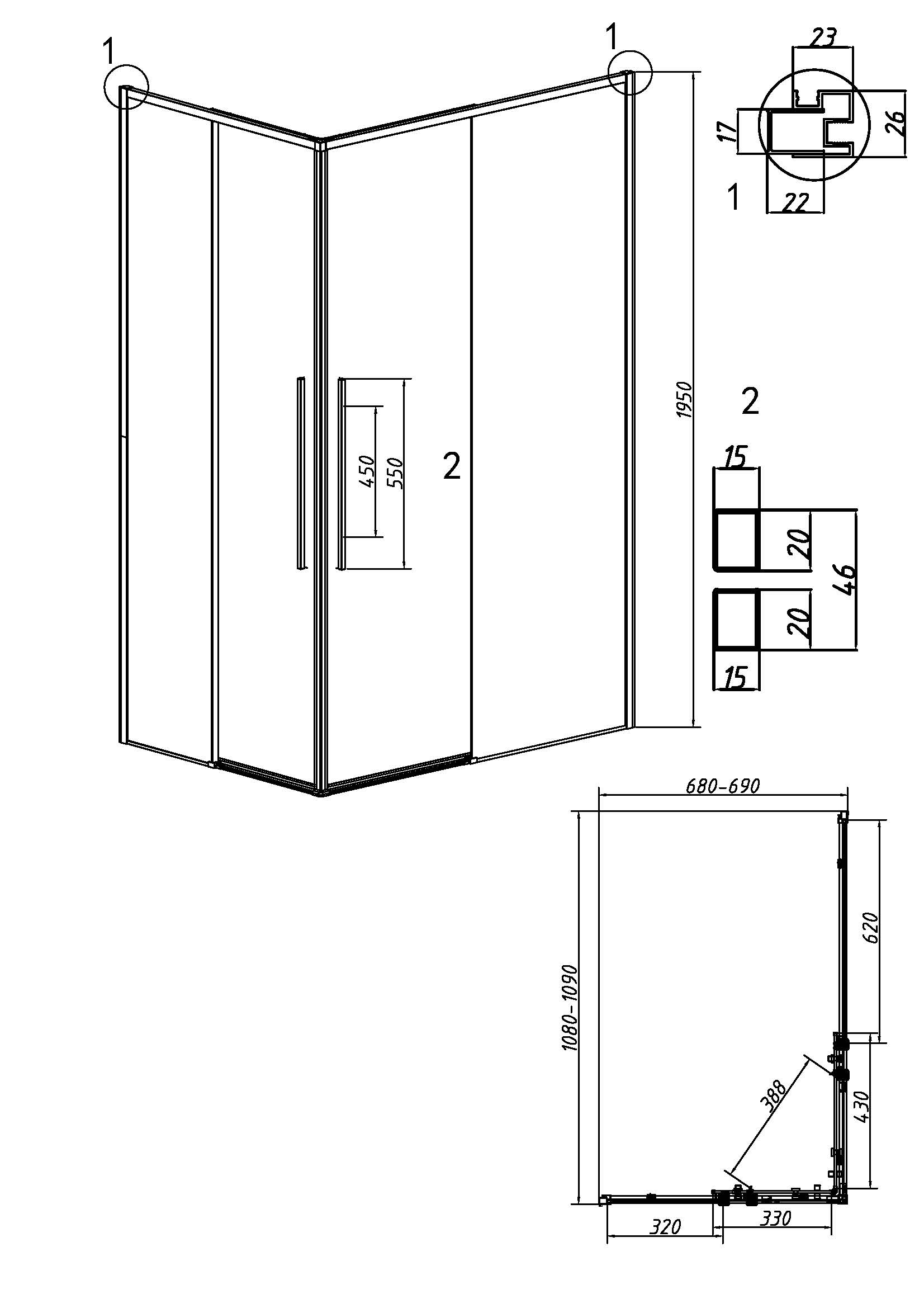 Описание Душевое ограждение Grossman 300.K33.01.1170.10.00