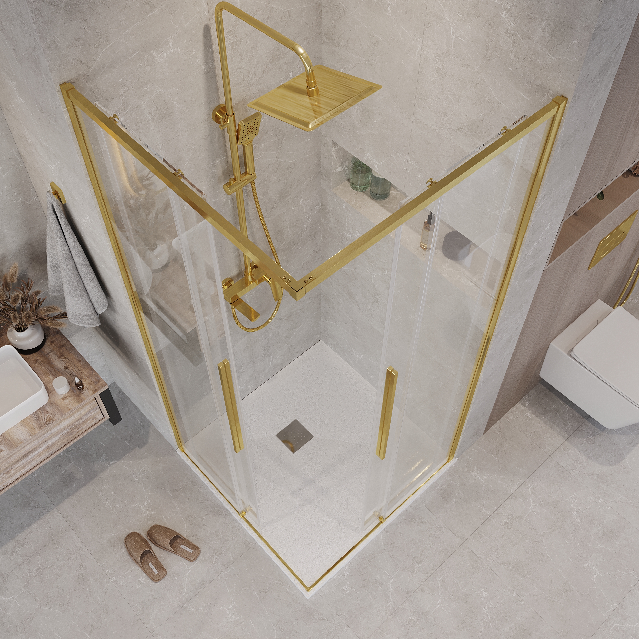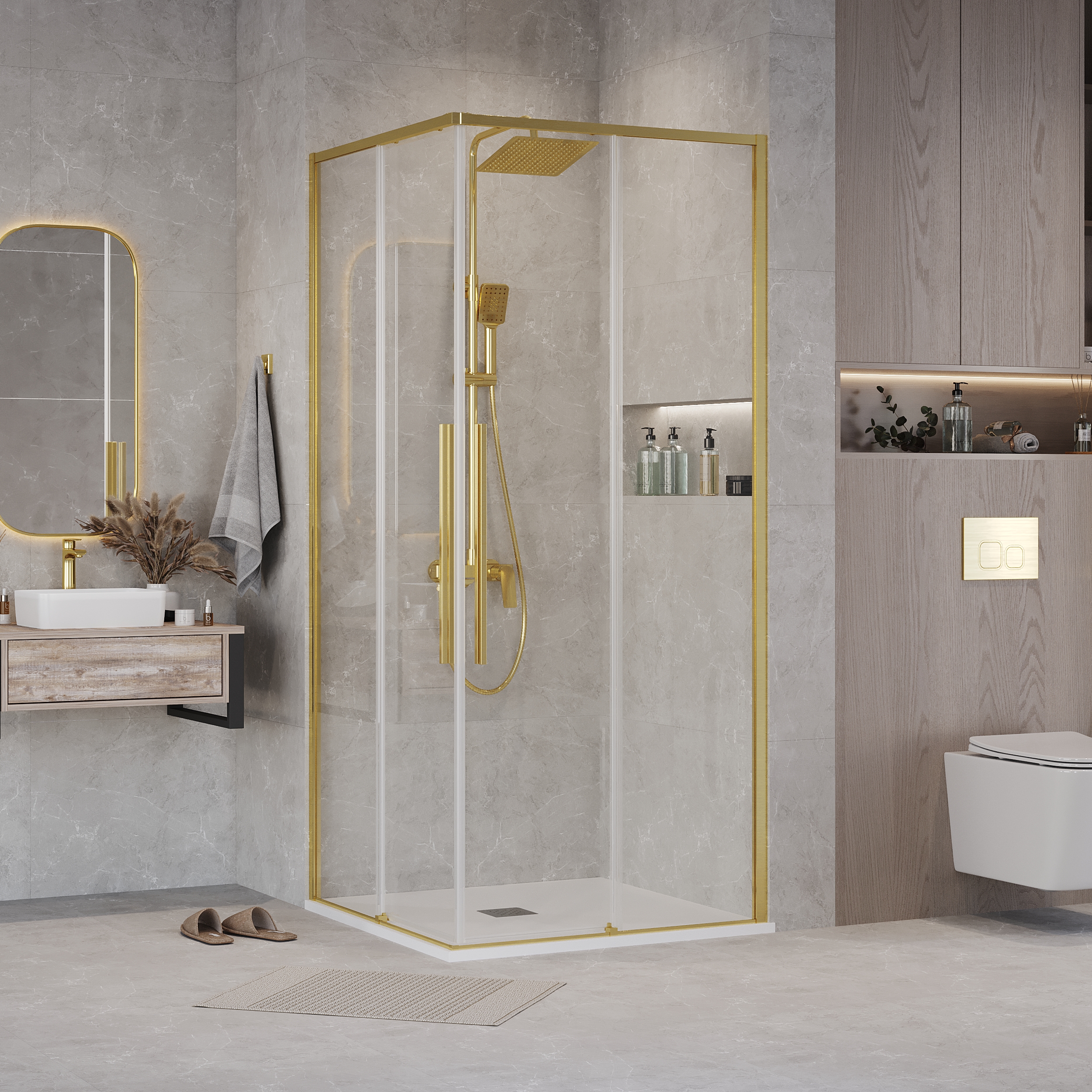 Душевое ограждение Grossman Galaxy 90х90 см 300.K33.01.9090.32.00, золото/прозрачное