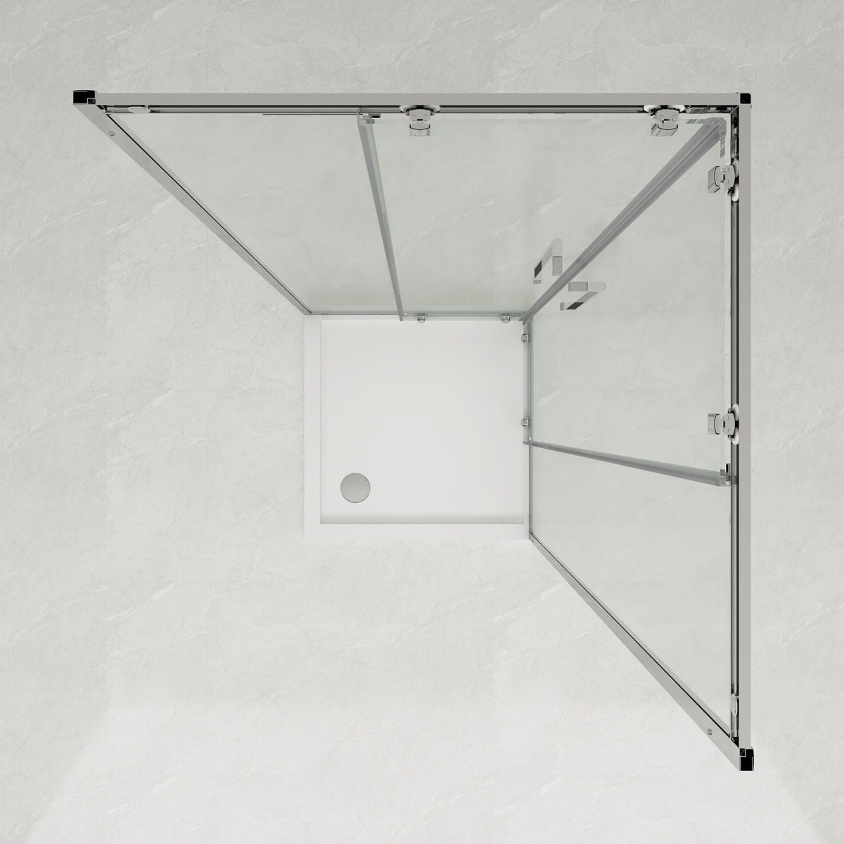 Душевое ограждение Loranto CS-AB01S-100, размер 1000х1000х1900 мм, профиль сатин, стекло прозрачное 6 мм. Габариты регулировки 975-985x975-985x1900 мм. Ширина входа 550 мм.