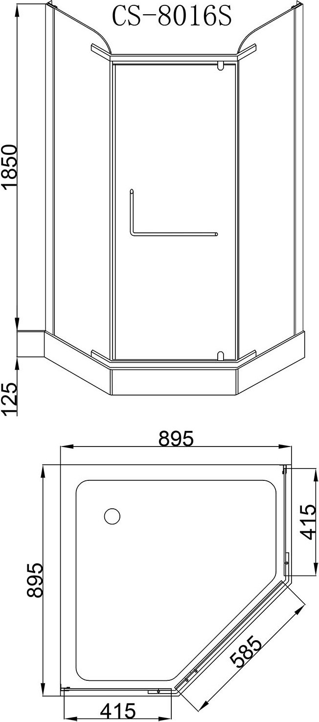 Душевое ограждение Loranto CS-816S B 900х900х2000 мм с низким поддоном 13 см и металлическим сифоном, профиль - сатин, стекло - прозрачное 8 мм.