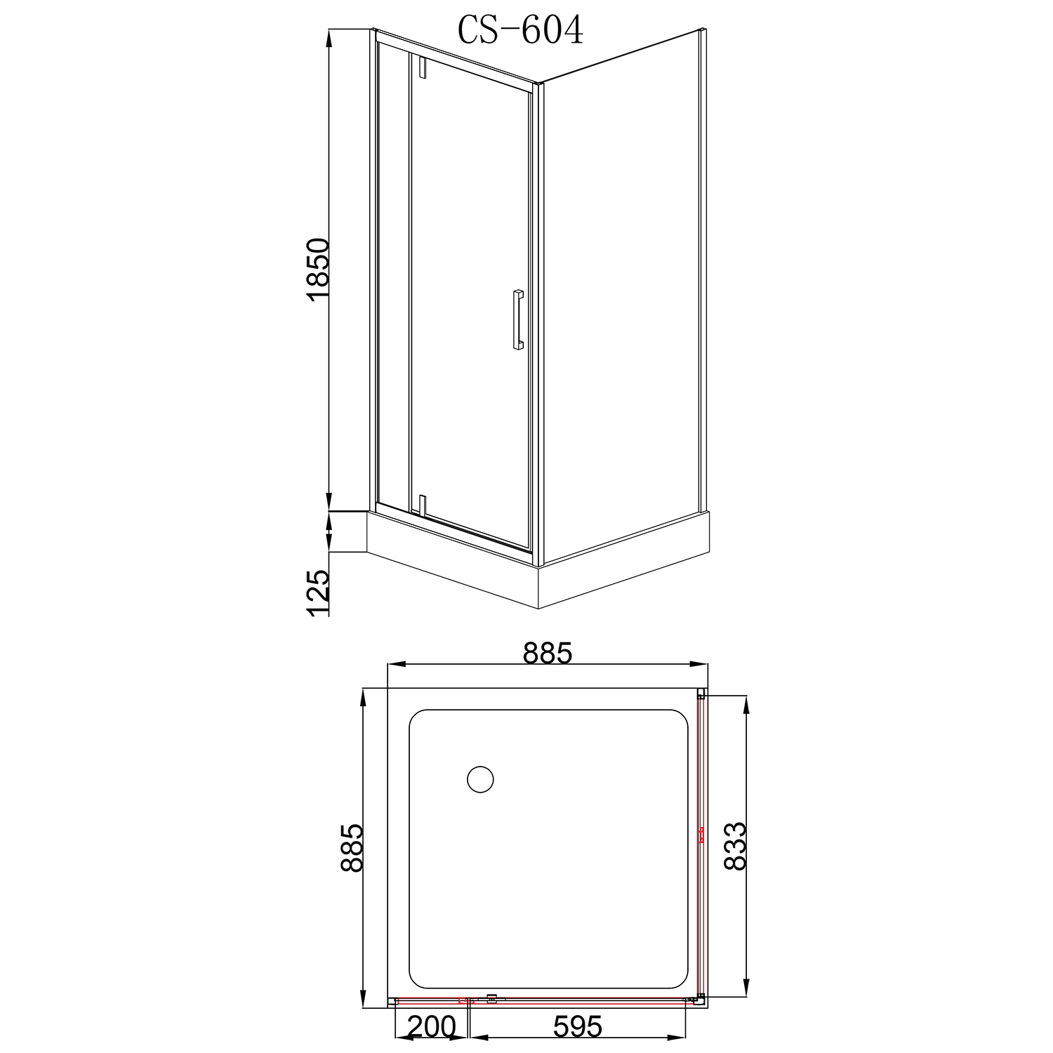 Душевое ограждение Loranto 90x90 см CS-604A 90, черный/прозрачное
