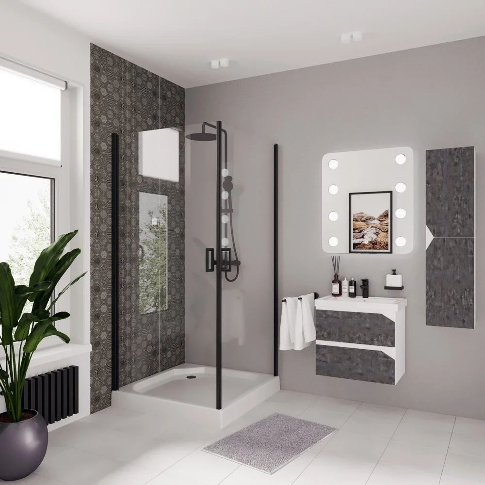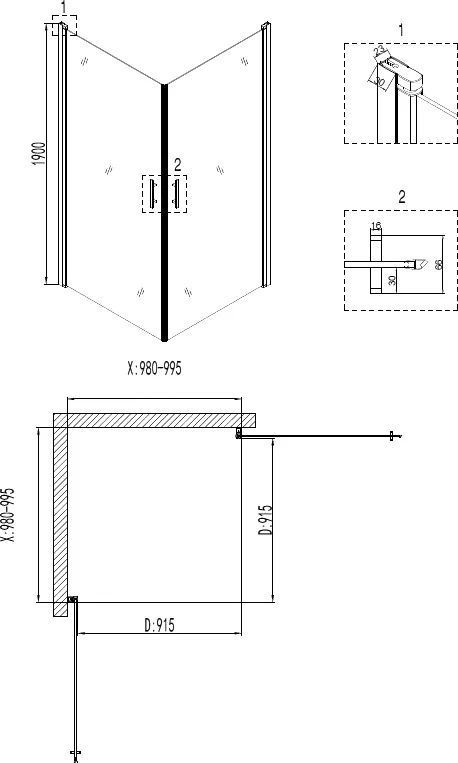 Душевое ограждение Niagara Nova NG-6804-08 BLACK 1000х1000х1900 мм, профиль – черный, стекло – прозрачное, 6 мм, габариты с регулировками: 980-995x980-995 мм. Душевой поддон приобретается отдельно.