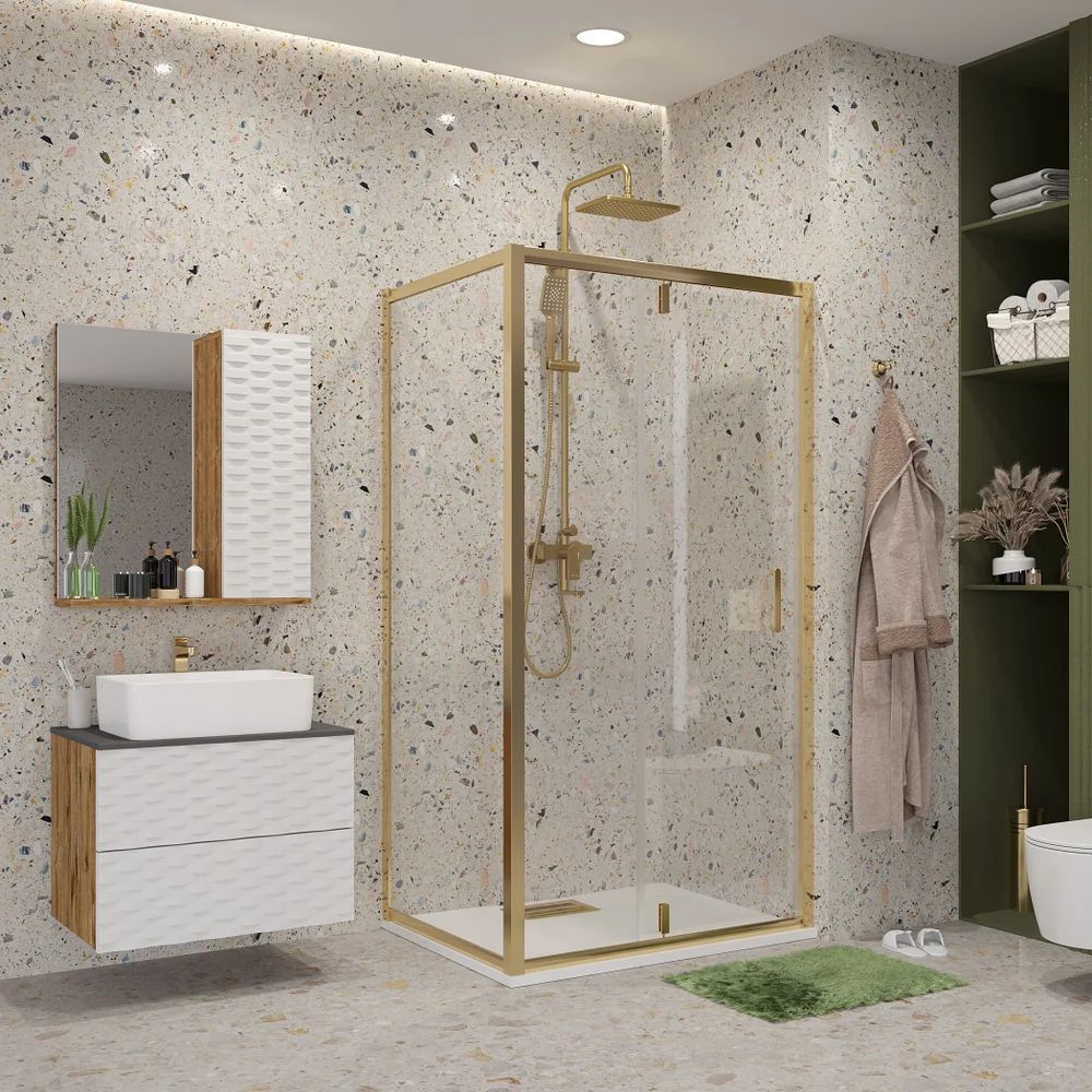 Душевое ограждение Niagara Nova NG-43-11AG-NG-A100G 1100х1000х1900 мм, профиль - холодное золото, стекло - прозрачное, 6 мм, ширина входа 530 мм. Душевой поддон приобретается отдельно. Дверь 110 см, душевая стенка 100 см.