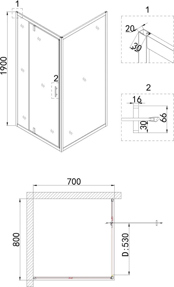 Душевое ограждение Niagara Nova NG-63-8A-NG-A70 800х700х1900 мм, профиль - хром, стекло - прозрачное, 6 мм, ширина входа 530 мм. Душевой поддон приобретается отдельно. Дверь 80 см, душевая стенка 70 см.