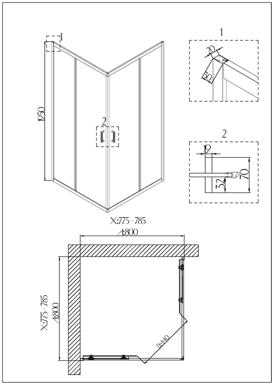 Душевое ограждение Niagara Nova 66880811 800х800х1950 мм, профиль - хром, стекло - прозрачное, 6 мм, ширина входа 440 мм. Габариты регулировки 775-785х775-785х1950 мм. Душевой поддон приобретается отдельно.
