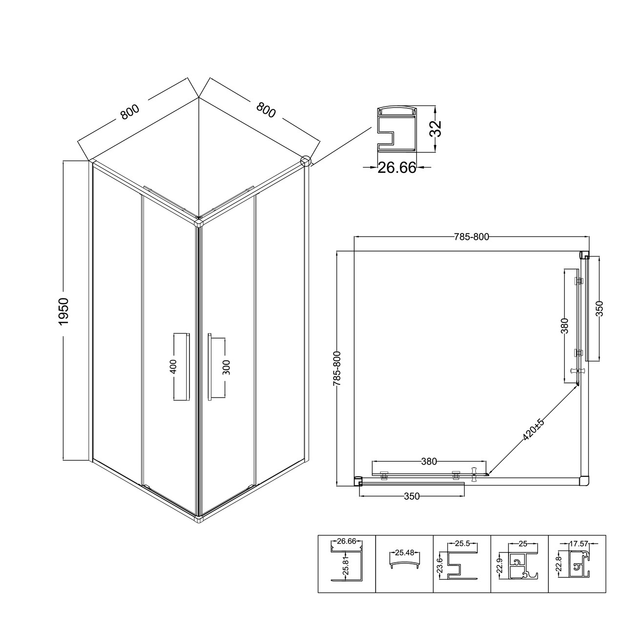 Душевое ограждение Niagara Nova NG-6622-34 800х800х1950 мм, профиль - хром, стекло - прозрачное, 6 мм, ширина входа 420 мм. Габариты регулировки 785-800х785-800х1950 мм. Душевой поддон приобретается отдельно.