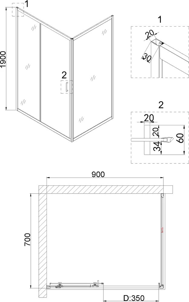 Душевое ограждение Niagara Nova NG-42-9AG-NG-A70G 900х700х1900 мм, профиль - холодное золото, стекло - прозрачное, 6 мм, ширина входа 350 мм. Душевой поддон приобретается отдельно. Дверь 90 см, душевая стенка 70 см.