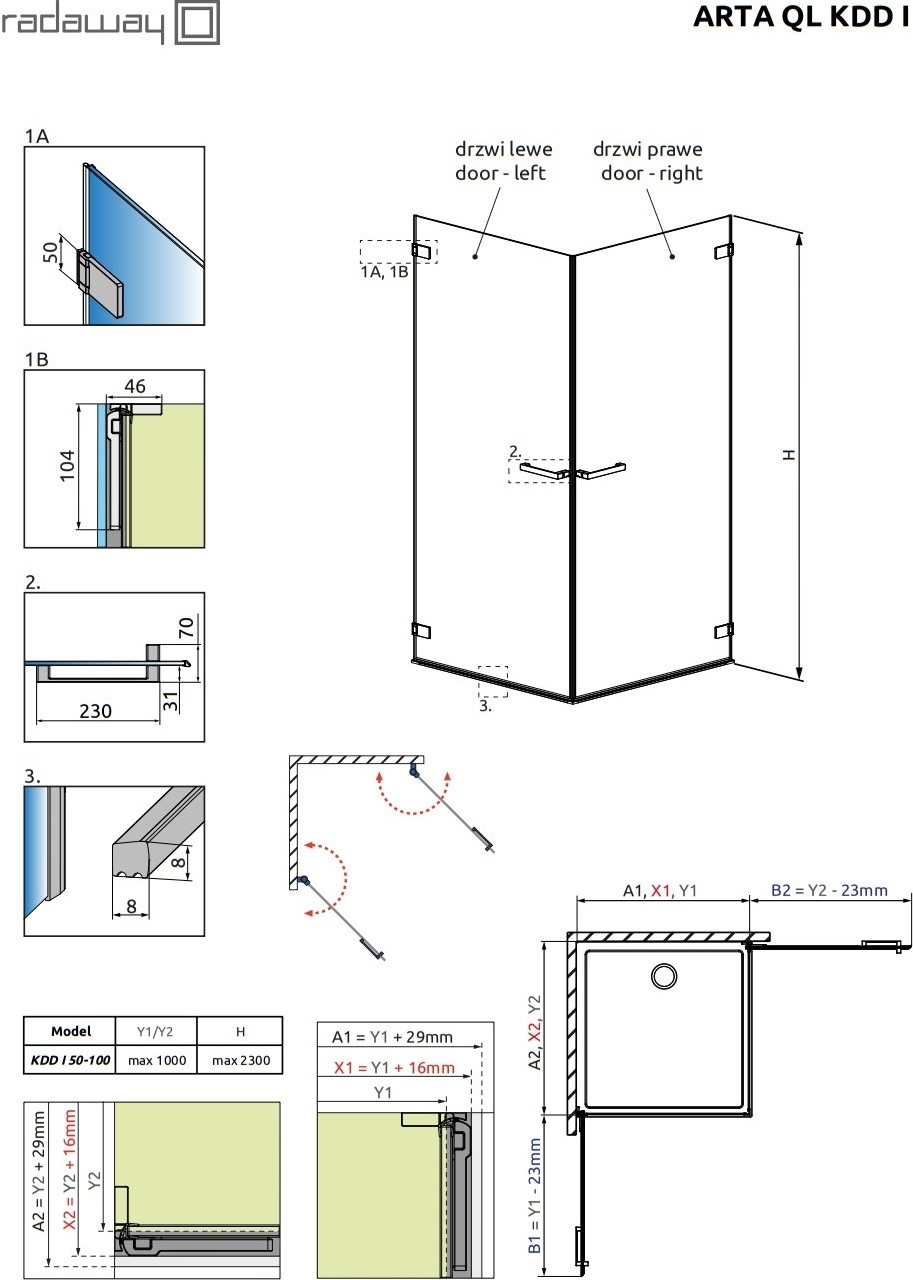 Душевое ограждение Radaway Arta QL KDD I 1000х1000х2000 мм. Профиль - хром, стекло - прозрачное, 8 мм. Поддон приобретается отдельно.