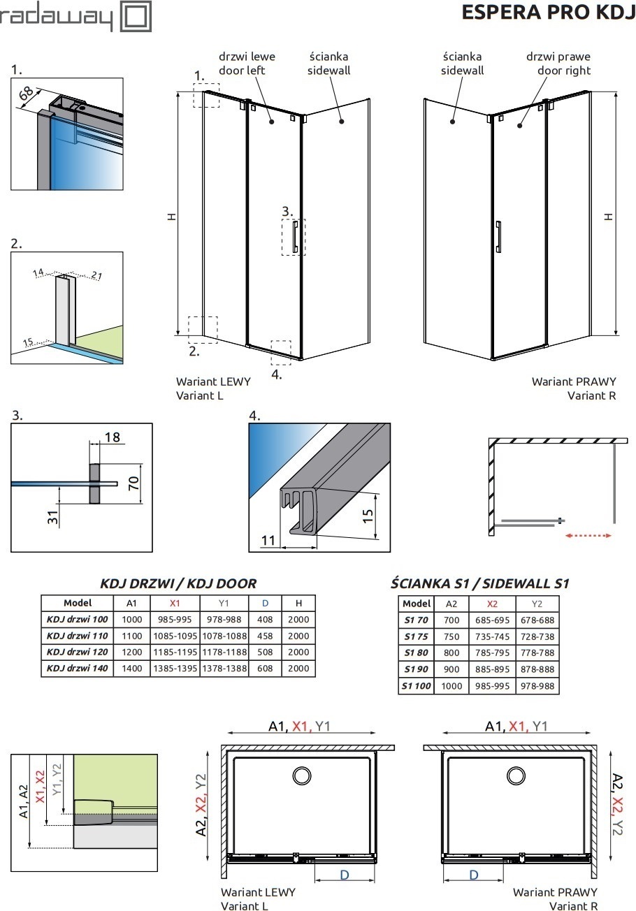 Душевое ограждение Radaway Espera Pro KDJ 1000х750х2000 мм. Профиль - хром, стекло - прозрачное 8 мм. Поддон приобретается отдельно. Дверь 100 см, душевая стенка 75 см.