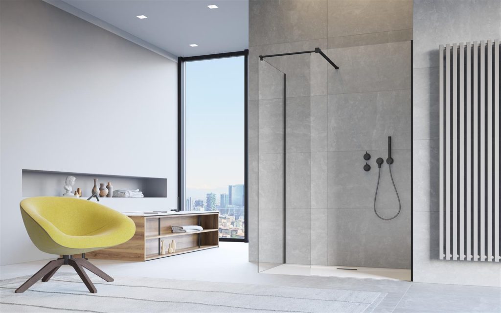 Душевое ограждение Radaway Modo New Black III 800х700х2000 мм. Цвет профиля – черный, цвет стекла – прозрачное, 8 мм. В комплект входит 2 перегородки с держателем и промежуточный кронштейн.