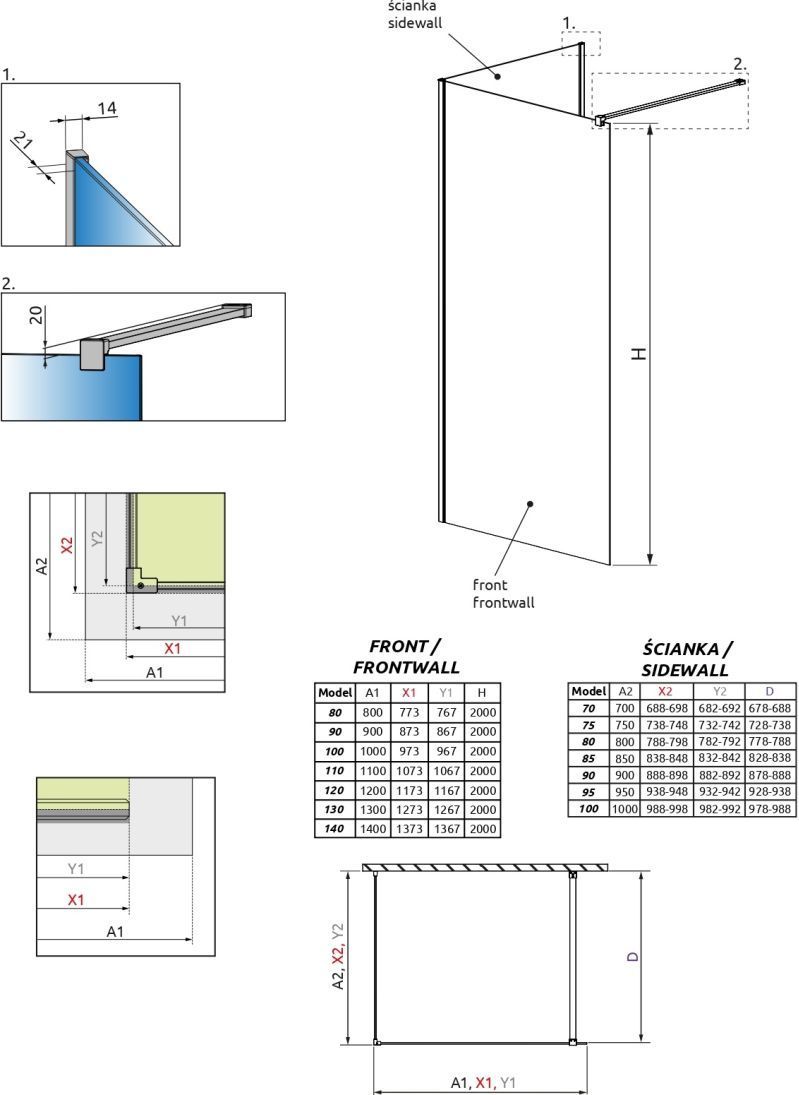 - Безопасное закалённое стекло толщиной 8 мм, согласно стандарту PN:EN 12150:1