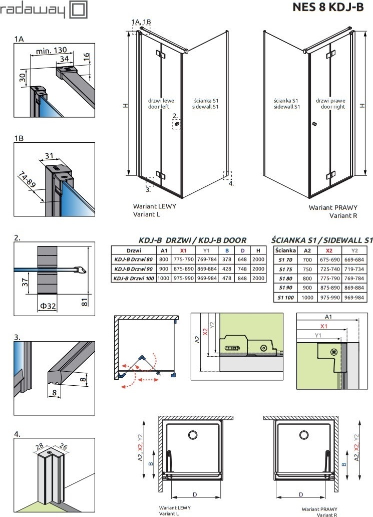 Душевое ограждение Radaway Nes 8 KDJ B + S1 1000х750х2000 мм. Профиль - хром, стекло - прозрачное, 8 мм. Поддон приобретается отдельно. Дверь 100 см, душевая стенка 75 см.