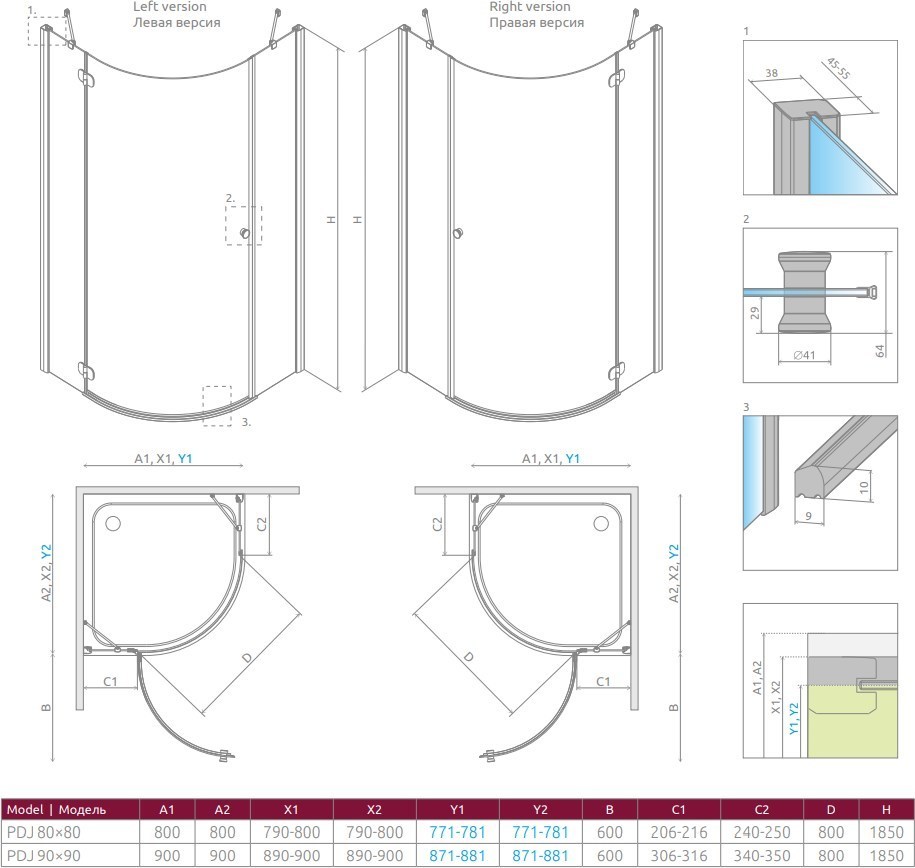 Душевое ограждение Radaway Torrenta PDJ 800х800х1850 мм. Профиль - хром, стекло - прозрачное, 6 мм. Поддон приобретается отдельно.