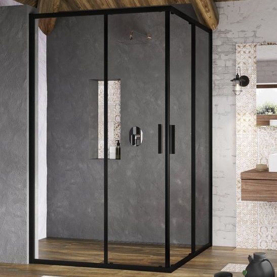 Душевое ограждение Ravak Blix Slim BLSRV2K, размер 100х100х195 см с угловым входом. Профиль чёрный, стекло Transparent. Габариты регулировки (986-1000)х(986-1000)х1950 мм.