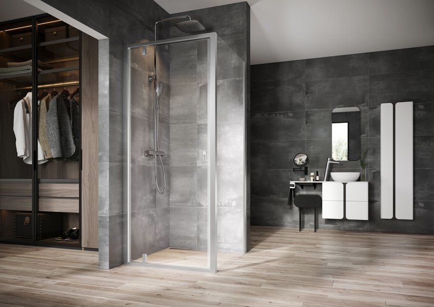 Душевое ограждение Ravak Nexty NDOP1+NPSS, размер 90х90х195 см. Профиль сатин, стекло Transparent. Габариты регулировки (875-900)х1950 мм. Вход 610 мм.