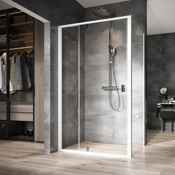 Душевое ограждение Ravak Nexty NDOP2+NPSS, размер 100х100х195 см. Профиль белый, фурнитура хром, стекло Transparent. Габариты регулировки (975-1000)х1950 мм. Вход 510 мм.