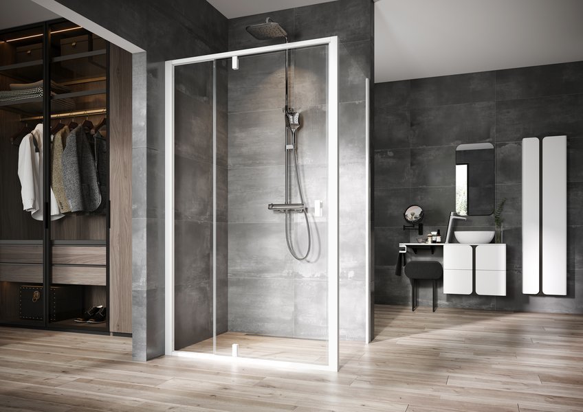 Душевое ограждение Ravak Nexty NDOP2+NPSS, размер 120х90х195 см. Профиль белый, фурнитура белая, стекло Transparent. Габариты регулировки (1175-1200)х1950 мм. Вход 610 мм.