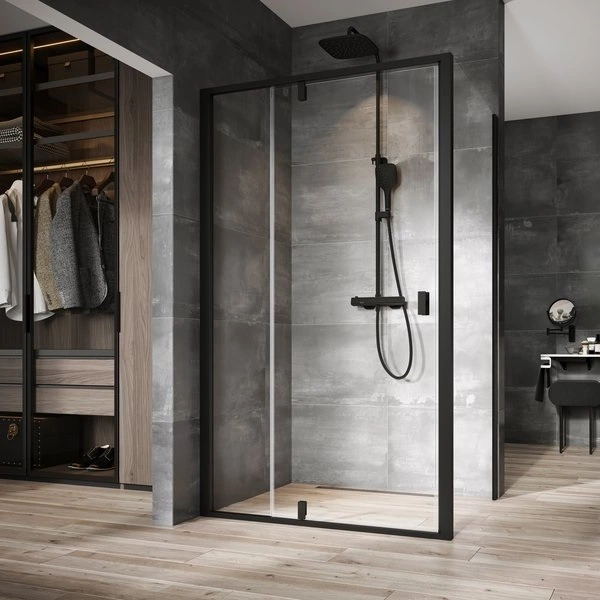 Душевое ограждение Ravak Nexty NDOP2+NPSS, размер 120х90х195 см. Профиль чёрный, стекло Transparent. Габариты регулировки (1175-1200)х1950 мм. Вход 610 мм.