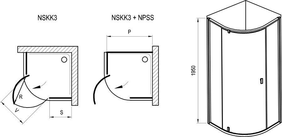 Душевое ограждение Ravak Nexty NSKK3, размер 90х90х195 см. Профиль белый, фурнитура белая, стекло Transparent. Габариты регулировки (870-895)х1950 мм. Вход 508 мм.