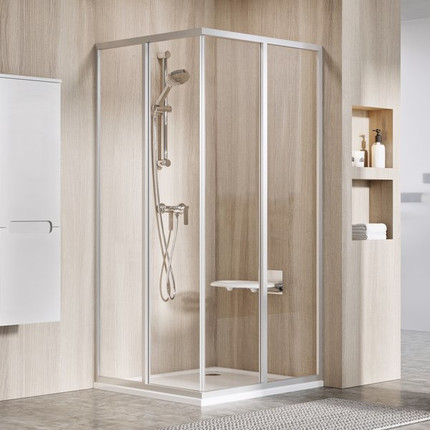 Душевое ограждение Ravak Supernova SRV2-S+SRV2-S-80, размер 80х80х195 см c угловым входом. Профиль - белый, стекло - Transparent, вход 431 мм.